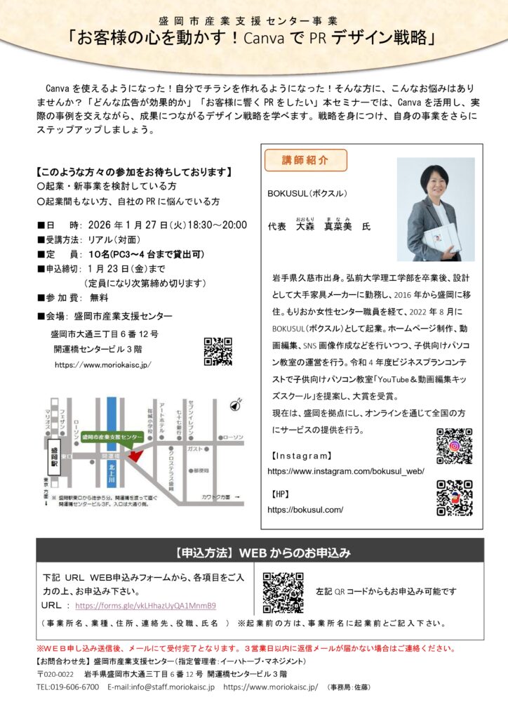 1月27日(火)はじめてでもおしゃれに作れる! Canvaで始めるチラシデザイン